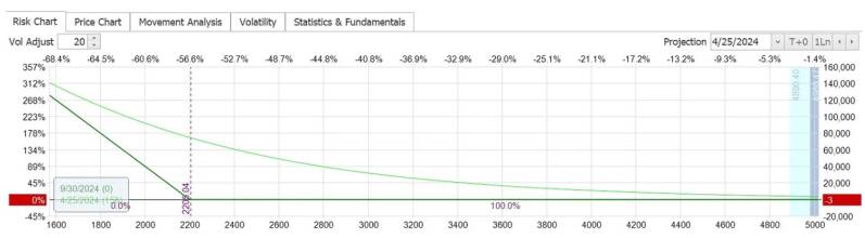 Moreover, the T+0 line's slope will steepen even more as IV explodes, driven by the positive Vega associated with long puts.